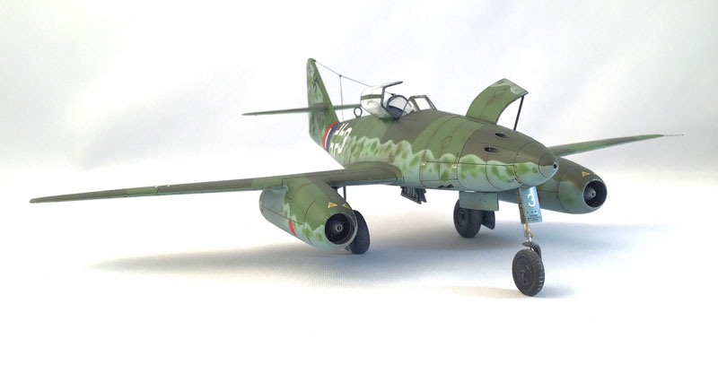 The model depicted is ‘White – 3’ and was flown by  Oberfahnrich Hans Guido Mutke of Staffel III JG7 Furstenfildbruk, April, 1945.